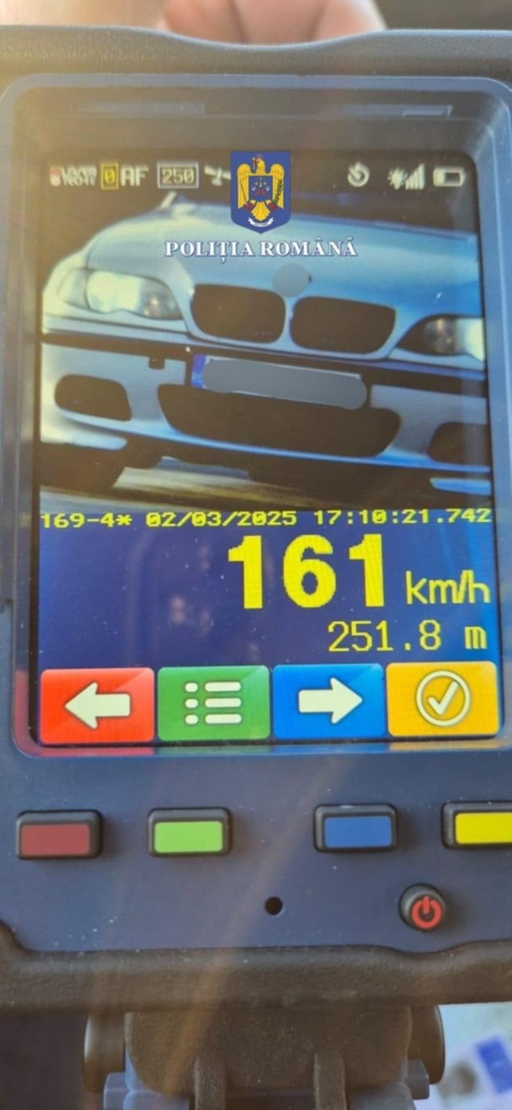 ”În cadrul acestor activități, în jurul orei 17:00, un autoturism a fost înregistrat de aparatul radar circulând cu o viteză de 161 km/h, pe un sector de drum unde limita maximă admisă este de 60 km/h. Conducătorul auto, un tânăr de 19 ani din comuna Căpreni, județul Gorj, a fost sancționat contravențional cu o amendă în valoare de 4.650 de lei. De asemenea, în conformitate cu prevederile legale, permisul de conducere i-a fost reținut pentru o perioadă de 120 de zile. Inspectoratul de Poliție Județean Vâlcea reamintește tuturor participanților la trafic importanța respectării regulilor de circulație, în special a limitelor de viteză”, au transmis reprezentanții IPJ Vâlcea.