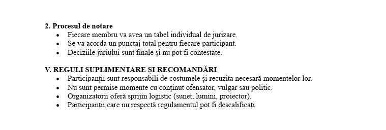 Evenimentul include o serie variată de competiții, precum: fotbal, baschet, tenis de masă (fete și băieți), concursuri de Miss și Mister, interpretare muzicală, desen, graffiti, dans, precum și activități de voluntariat ce vizează dezvoltarea abilităților practice ale elevilor. Prin participarea la aceste activități, liceenii sunt încurajați să-și valorifice potențialul, să-și susțină cu mândrie liceul și să dobândească valori precum perseverența, spiritul de echipă, implicarea civică și corectitudinea în competiție.
