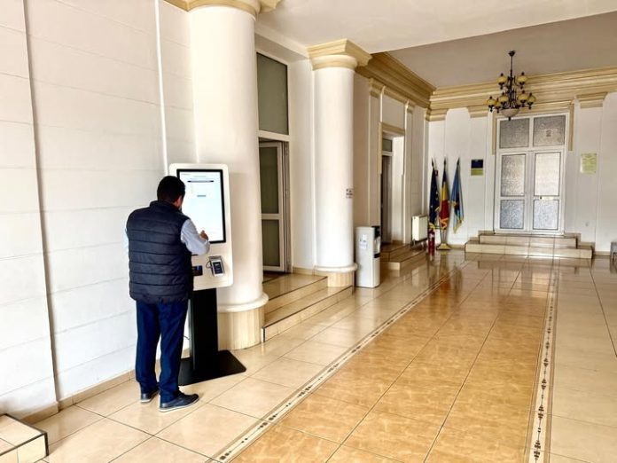 Începând din această săptămână, în sediul Primăriei a fost adus un ”Robot” prin intermediul căruia cetățenii își pot achita dările către stat. Plata se efectuează doar cu cardul, iar accesul în clădirea Primăriei se face până la ora 20:00.