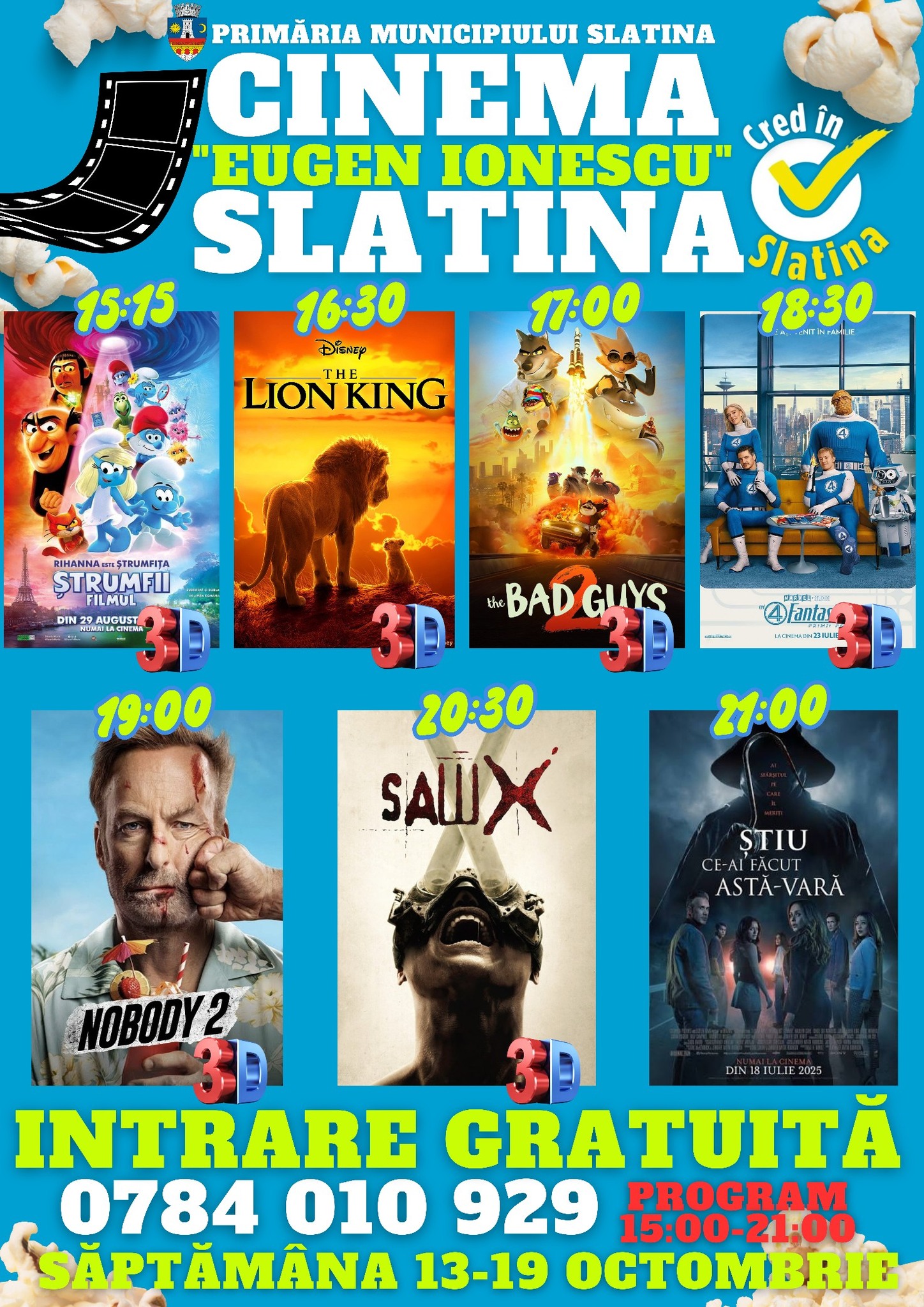 Programul filmelor pentru această săptămână