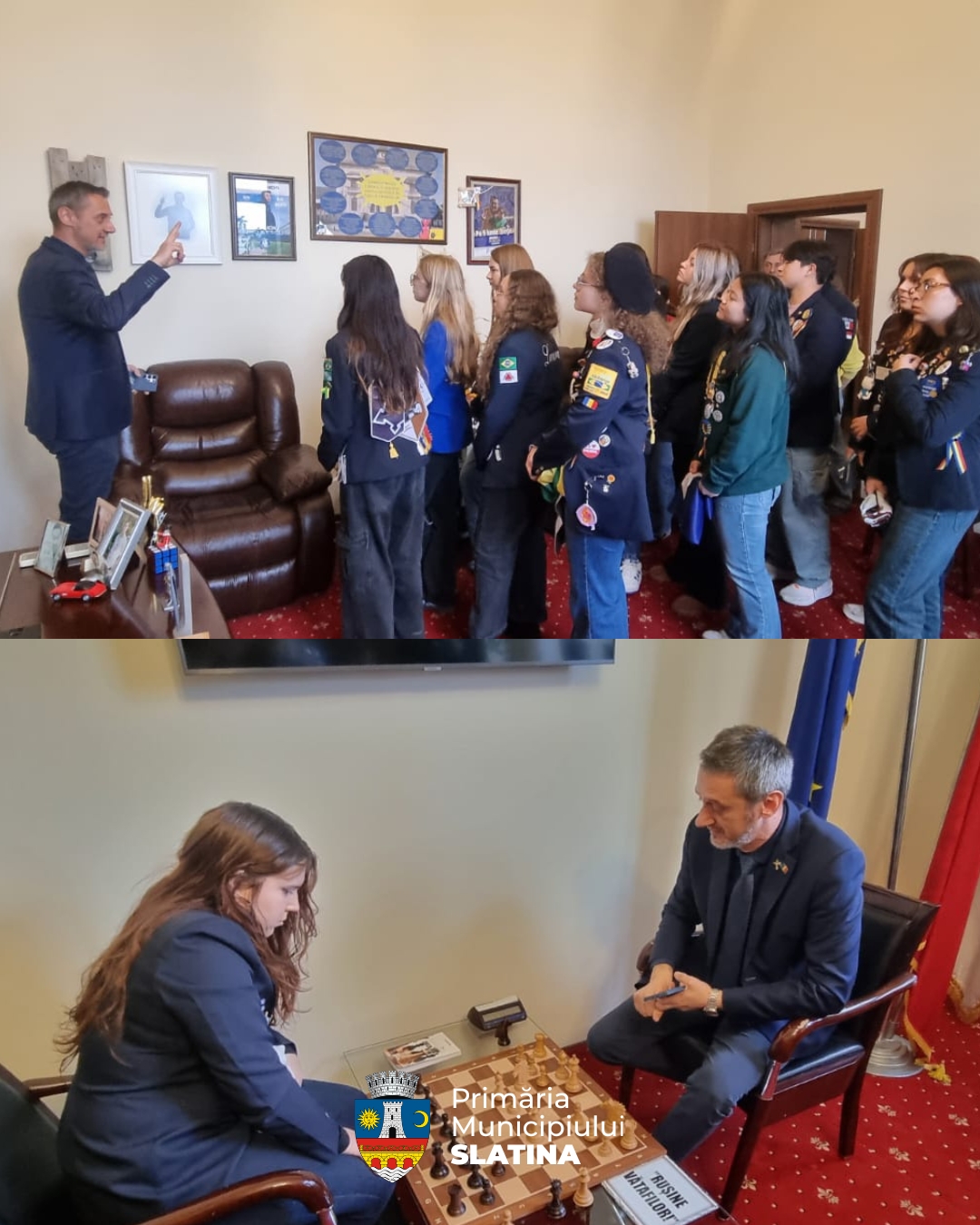 Momentul a fost presărat cu glume și interacțiuni relaxate, specifice atmosferei prietenoase pe care edilul a dorit să o creeze pentru vizitatorii săi. Un detaliu care le-a atras atenția tinerilor a fost tabla de șah a primarului, așezată permanent lângă birou, simbol al pasiunii sale constante pentru acest joc al strategiilor.