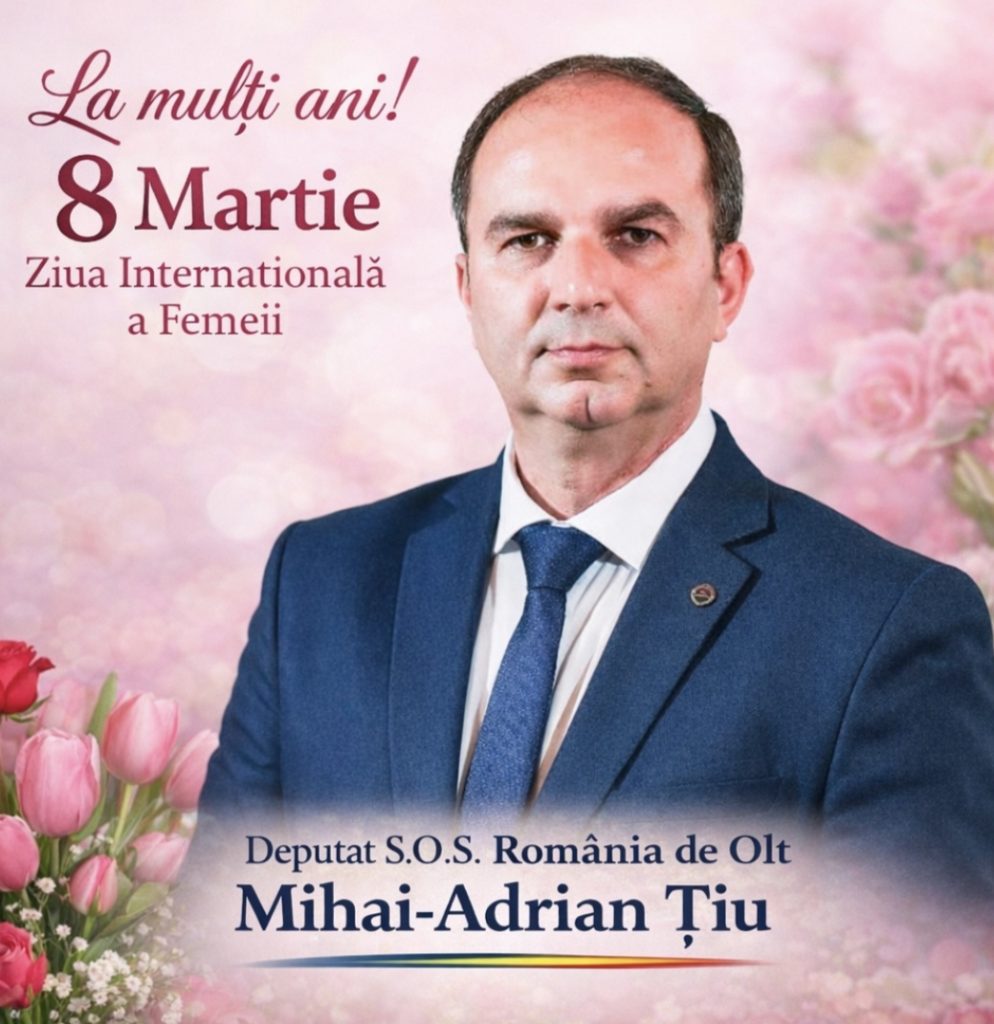 Cu prilejul Zilei Internaționale a Femeii, deputatul S.O.S. România de Olt, Mihai-Adrian Țiu, a transmis un mesaj de respect și recunoștință pentru toate femeile, subliniind rolul esențial pe care acestea îl au în familie, în comunitate și în societate.