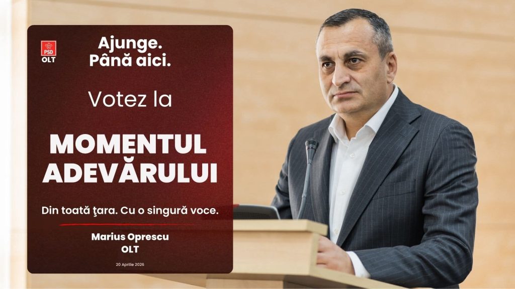 „De aceea spunem ferm: până aici. Nu pentru că vrea PSD, ci pentru că românii o cer. Există un moment în care lucrurile nu mai pot fi amânate, iar adevărul nu mai poate fi ascuns. Pe 20 aprilie, Oltul spune: ajunge. Este momentul adevărului.”